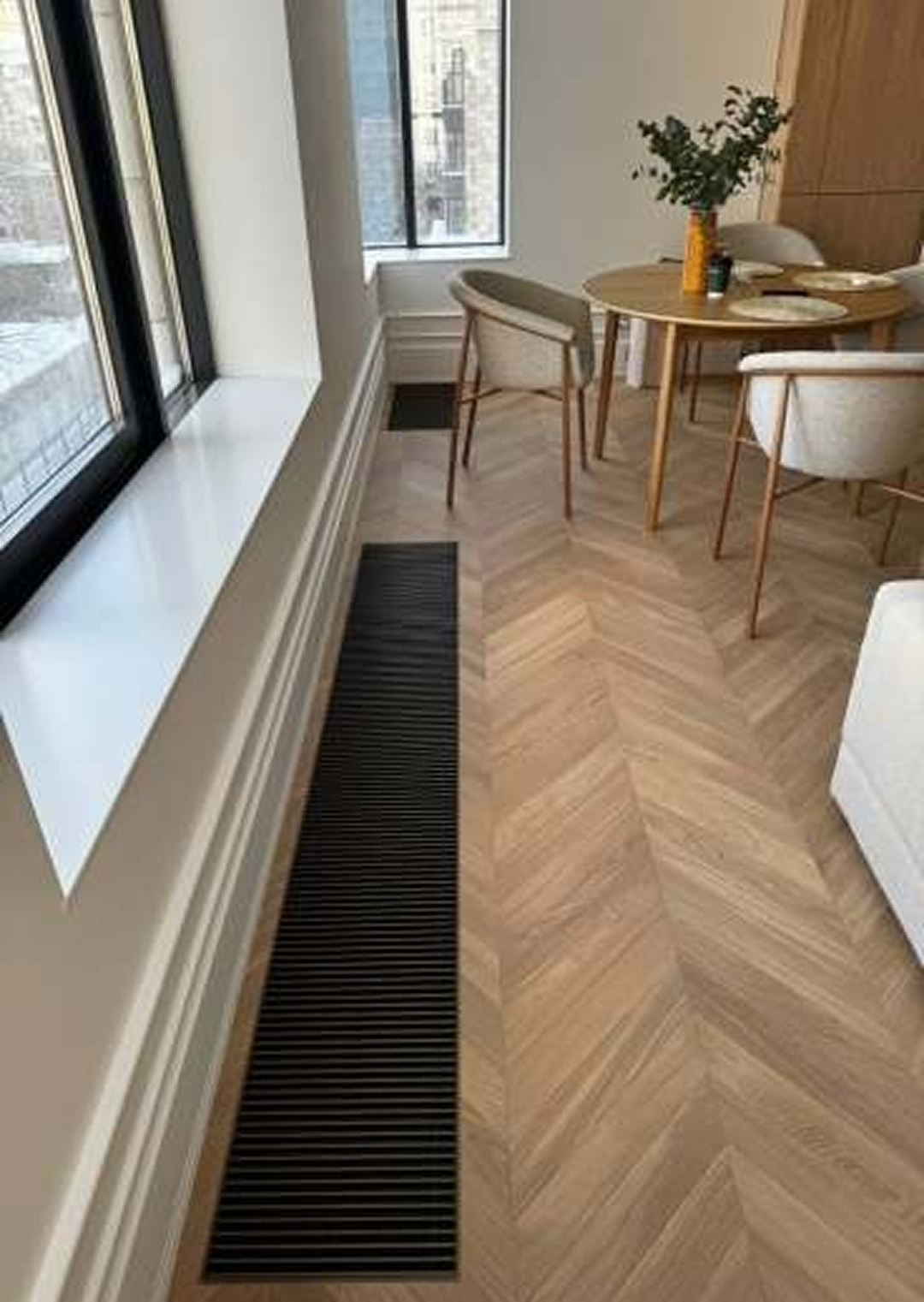 Мы производим комбинированные внутрипольные конвекторы, которые служат не только отоплением, ещё и терминалами для подачи свежего вентиляционного воздуха