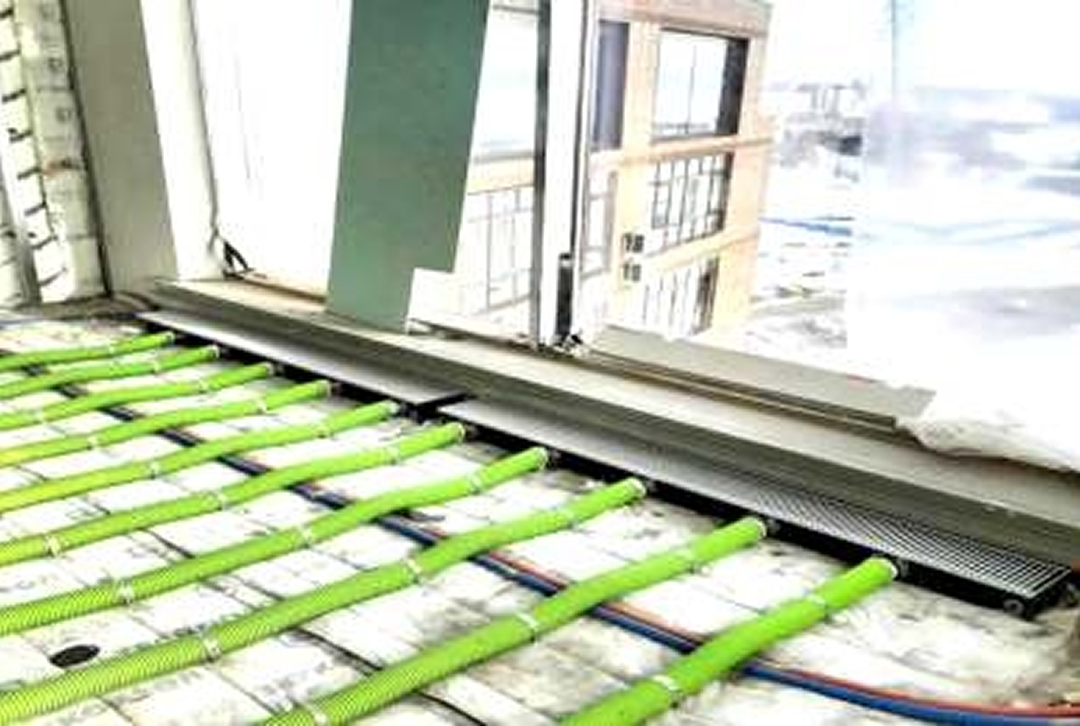 Прокладка воздуховодов в стяжке пола с подачей свежего воздуха через внутрипольные конвекторы