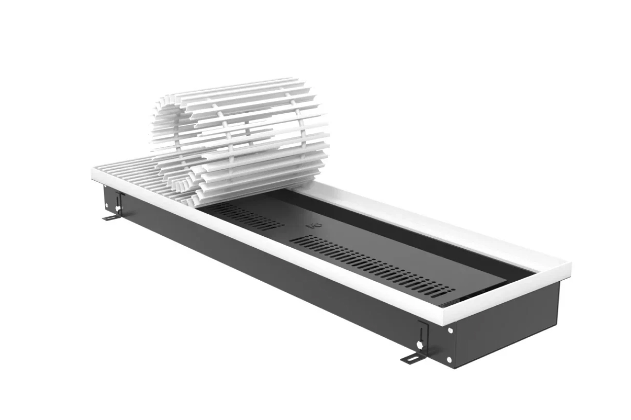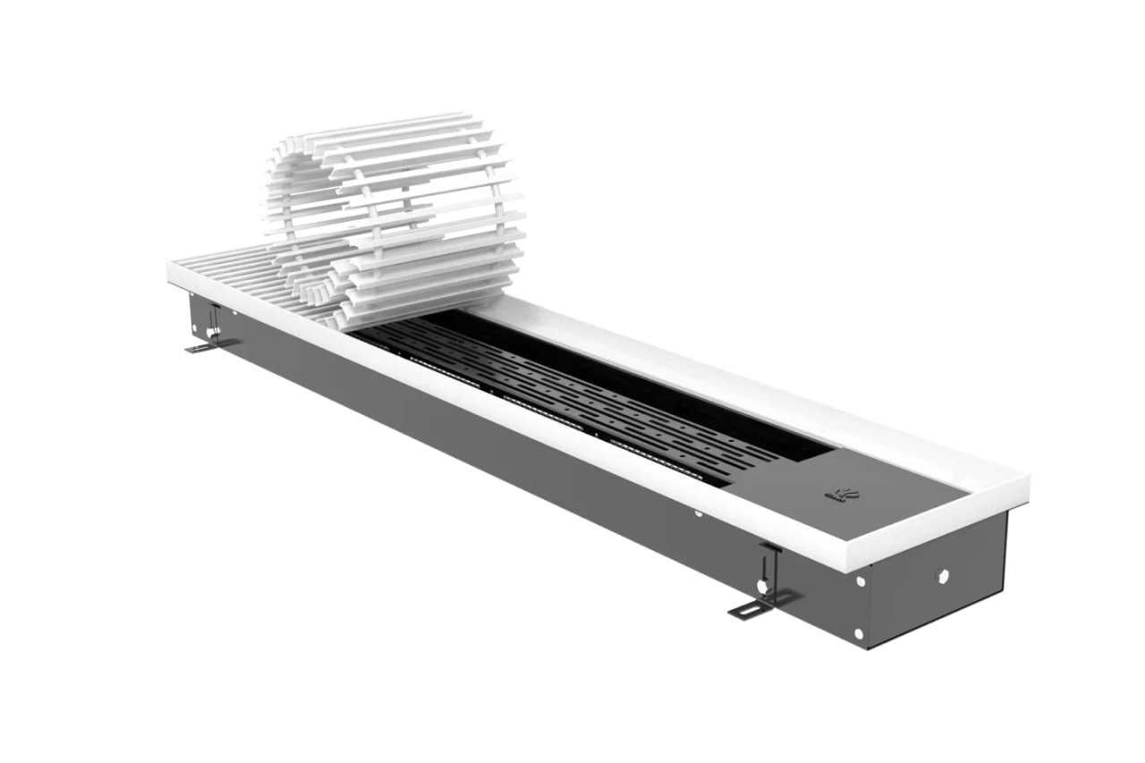 Электрические внутрипольные системы используют там, где нужен стабильный прогрев без подключения к водяной линии. Прибор монтируется в пол, поэтому не занимает место у стен и не влияет на планировку. Внутри корпуса находится нагревательный элемент. Он создает конвекцию и поднимает теплый воздух вверх. Такой вариант подойдет для квартир, домов, офисов и коммерческих помещений. Внутрипольные решения помогают сохранить интерьер чистым и аккуратным.